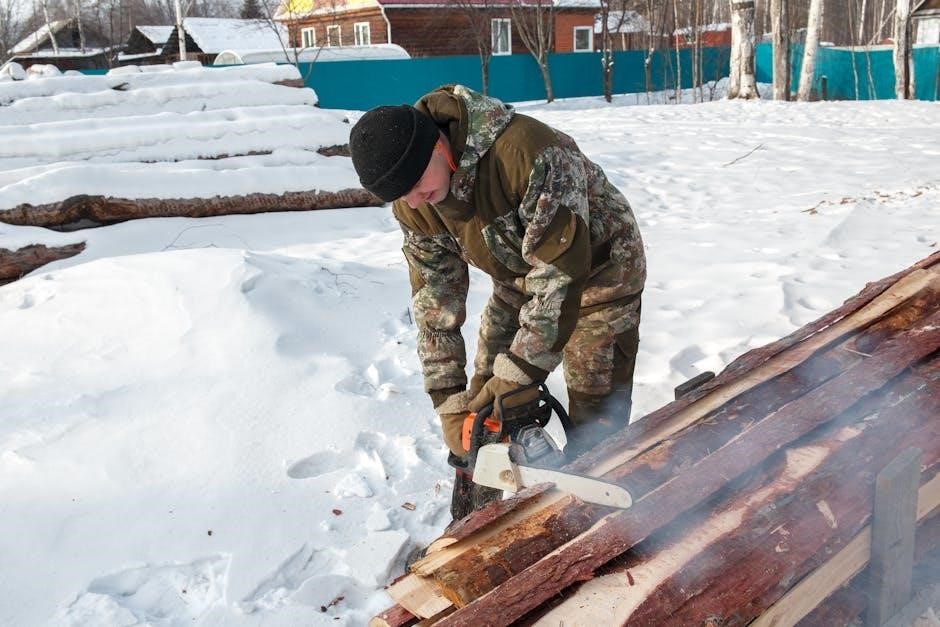 Accurate measuring tools are crucial for cutting firewood to consistent lengths. A telescopic gauge with a magnet base allows easy adjustment from 16 to 26 inches, ensuring precise cuts; Laser guides also enhance accuracy, projecting a clear cutting line. Additionally, homemade measuring sticks or marked bars can be used for quick reference. These tools help achieve uniform lengths, reduce waste, and save time, making the firewood cutting process more efficient and reliable for any user.